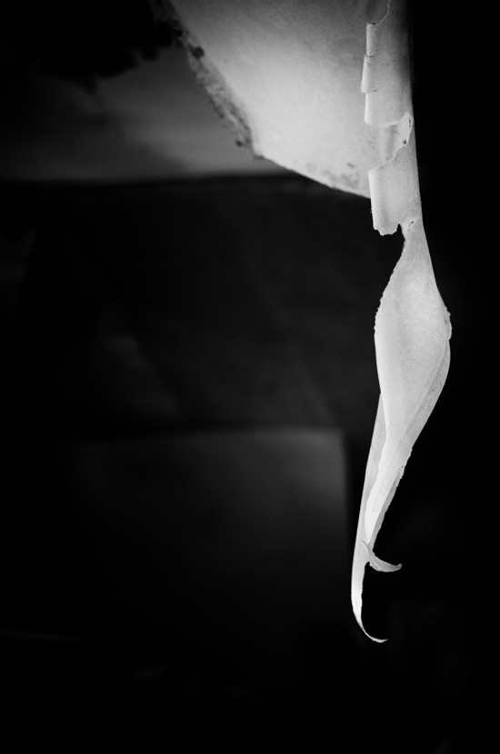 Ripped wallpaper hanging so gracefully in an abandoned building.