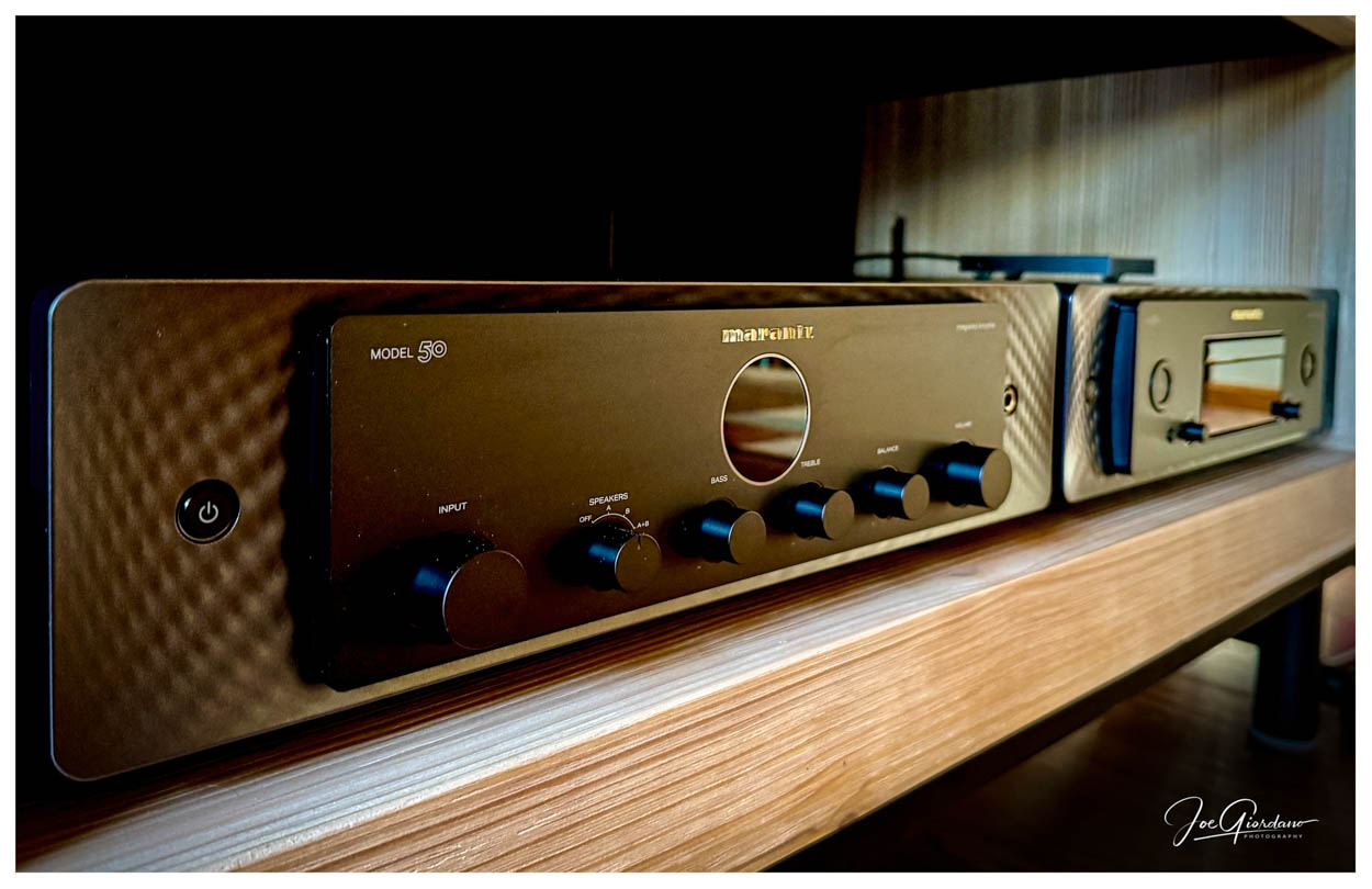 The last photo is showing my every day listening rigs which are two thoroughly modern Marantz pieces a Model 50 integrated amplifier and a Marantz CD 50n CD player – music streamer – digital to analog converter. I chose these pieces because of their refined sound and their classic industrial design that Saul Marantz made so famous in his 1950’s and 60’s designs including the porthole display on the Model 50 integrated amplifier.