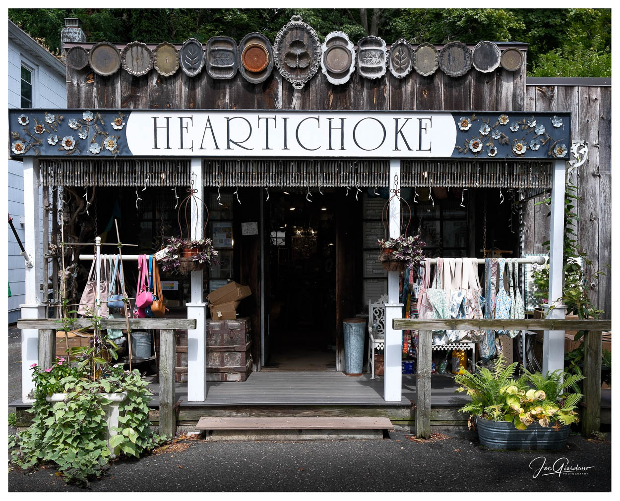 The serving platters above the Heartichoke sign are what attracted me to this small storefront but when I got closer I also noticed the butter knives hanging below the sign.